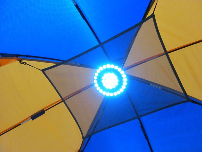 遮陽棚內部帶專用搭扣,可以掛置物網(特制B3網紗,隨便撕扯都沒事),可以放一些閑雜物品,特別是防水物品,還可以掛燈,夜釣或者夜游都不再是問題