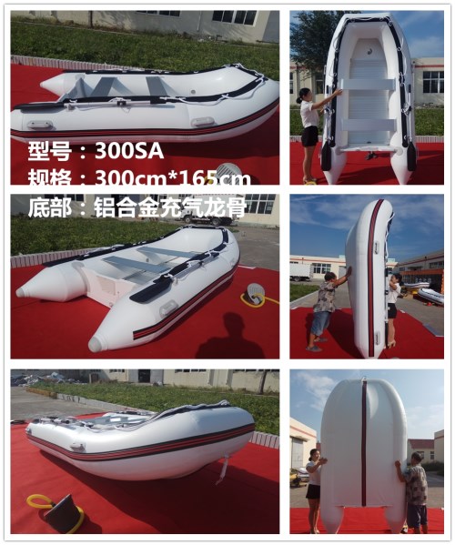 此類艇重量在30公斤,上到3米以上的達到了50公斤,如果是一個人釣魚用,在攜帶上就比較困難,需要多次來回搬運數次,所以不建議購買。上面說了,這種艇較適合捕魚用,為什么呢?捕魚需站在船上操作,動作非常大,如果沒有良好的穩定性能,還能站立嗎,所以良好的穩定性能是必備的。這設計上,重的艇浮筒加大,這樣可以提高整體得載重能力,同時在抗側翻、抗沖擊上也一并提高,所以進海浪大也能平穩行駛。在材質上普通艇有0.9mm,加厚型的可以達到1.2mm,內部會有一層加強型的夾網,使材質韌性超強,嚴防被刺破。重的艇是因為材質厚,而且所有的地板也是鋁合金的,可以說一條船50kg,有一半的船體的重量,還有一半是鋁合金地板,捕魚三五成群,船體與地板分開拿也不算太重,可以輕易攜帶,再者就是此種艇在性能上都達到要求,我建議捕魚選擇重的充氣橡皮艇好。